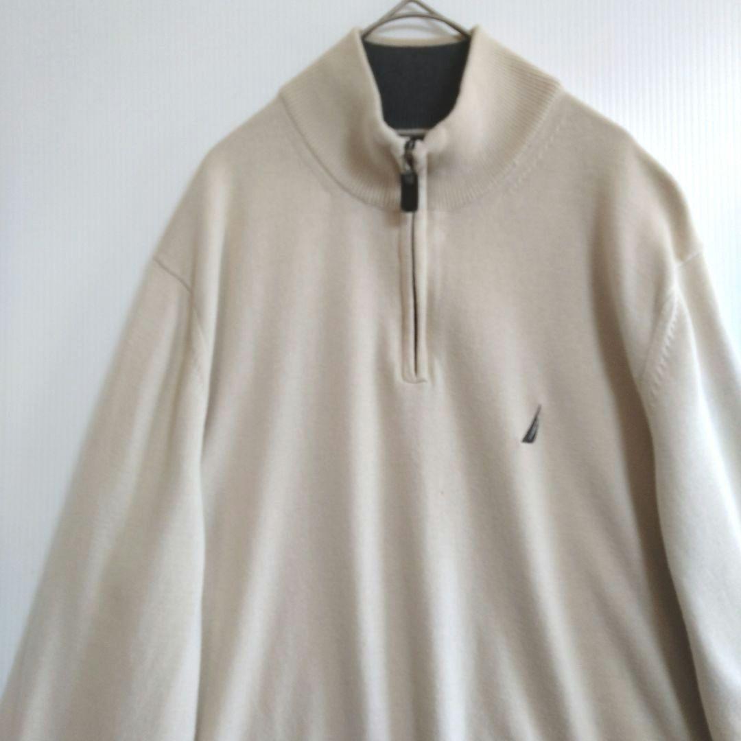 - 817 NAUTICA ハーフジップトレーナー Lサイズ US古着 ベージュ