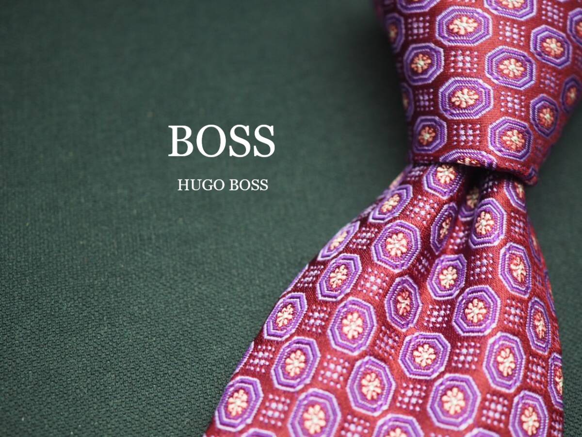 - 美品【HUGO BOSS ヒューゴ ボス】 F2242 ワイン系 SILK ブランド ネクタイ 古着 良品 転売 仕入