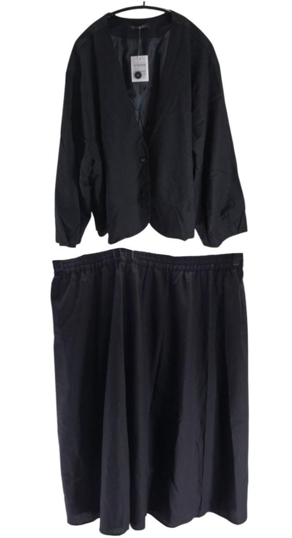 - SS2846◆ 新品 スーツ 上下セット ジャケット袖ペザント スカート ウエストゴム Aライン ロング丈 無地 替えボタン付 5Lサイズ 黒 ブラック