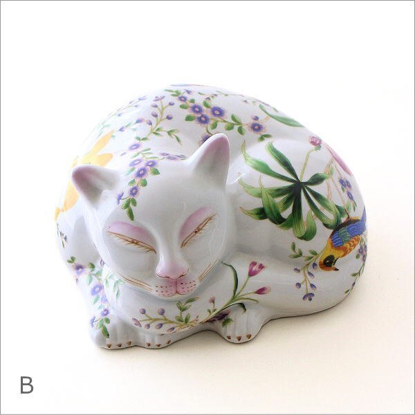 - 猫 置物 陶器 玄関 インテリア ねこ 置き物 オブジェ 雑貨 まどろみネコの陶器ネコ 【Bタイプ】 送料無料(一部地域除く) swa5848b