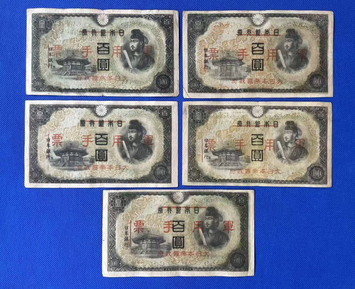 - 軍用手票 日華事変 百圓札 100円 聖徳太子 古紙幣 日本銀行券。5枚まとめて