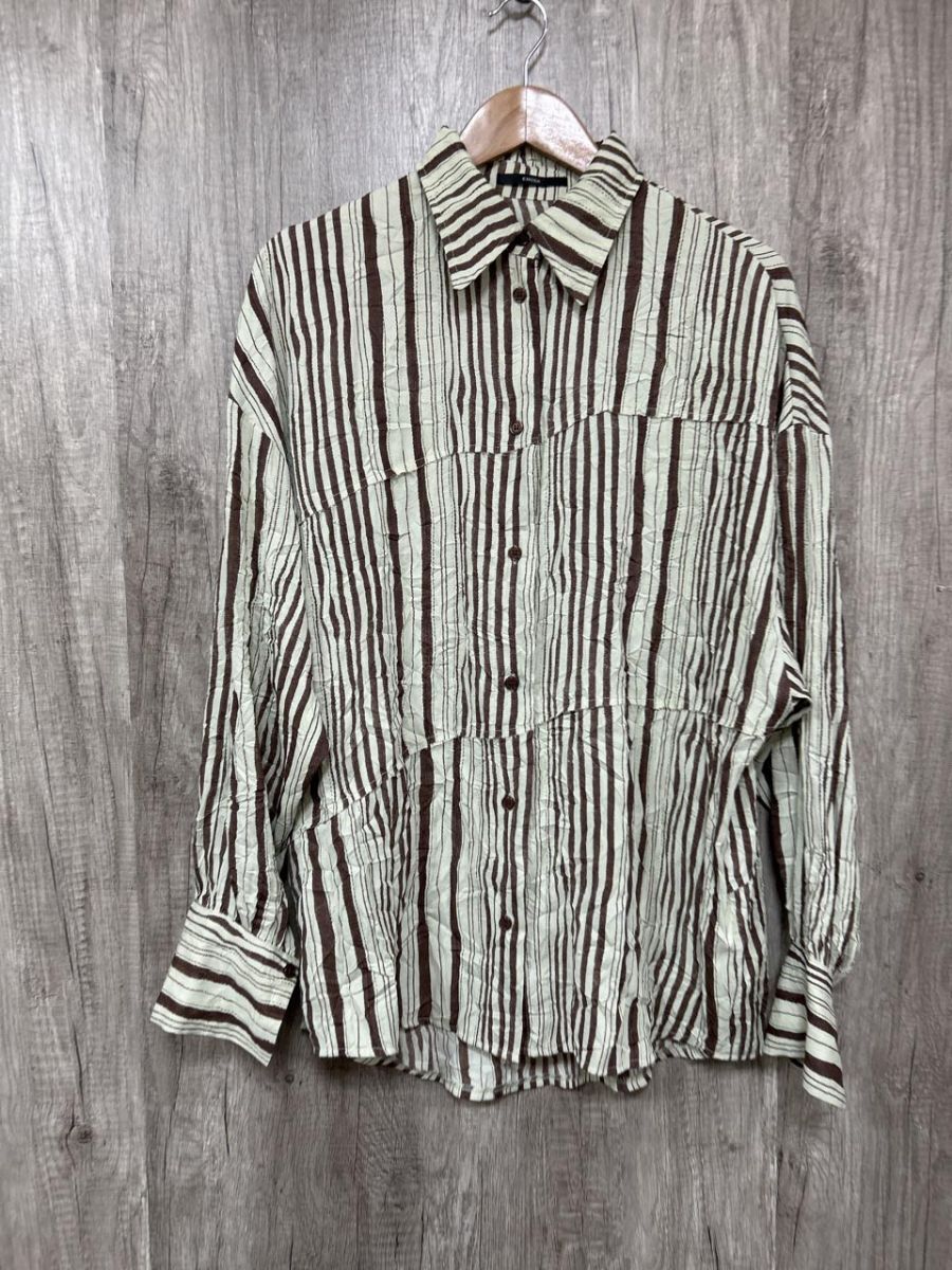 - ネコポスOK EMODA エモダ スイッチングストライプ シャツ sizeF/緑×茶 ■◇ レディース