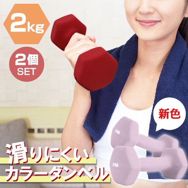 - 【2個セット/ライラック】滑りにくい カラー ダンベル 2kg 筋トレ エクササイズ 宅トレ シンプル ウエイトトレーニング ダイエット 新品