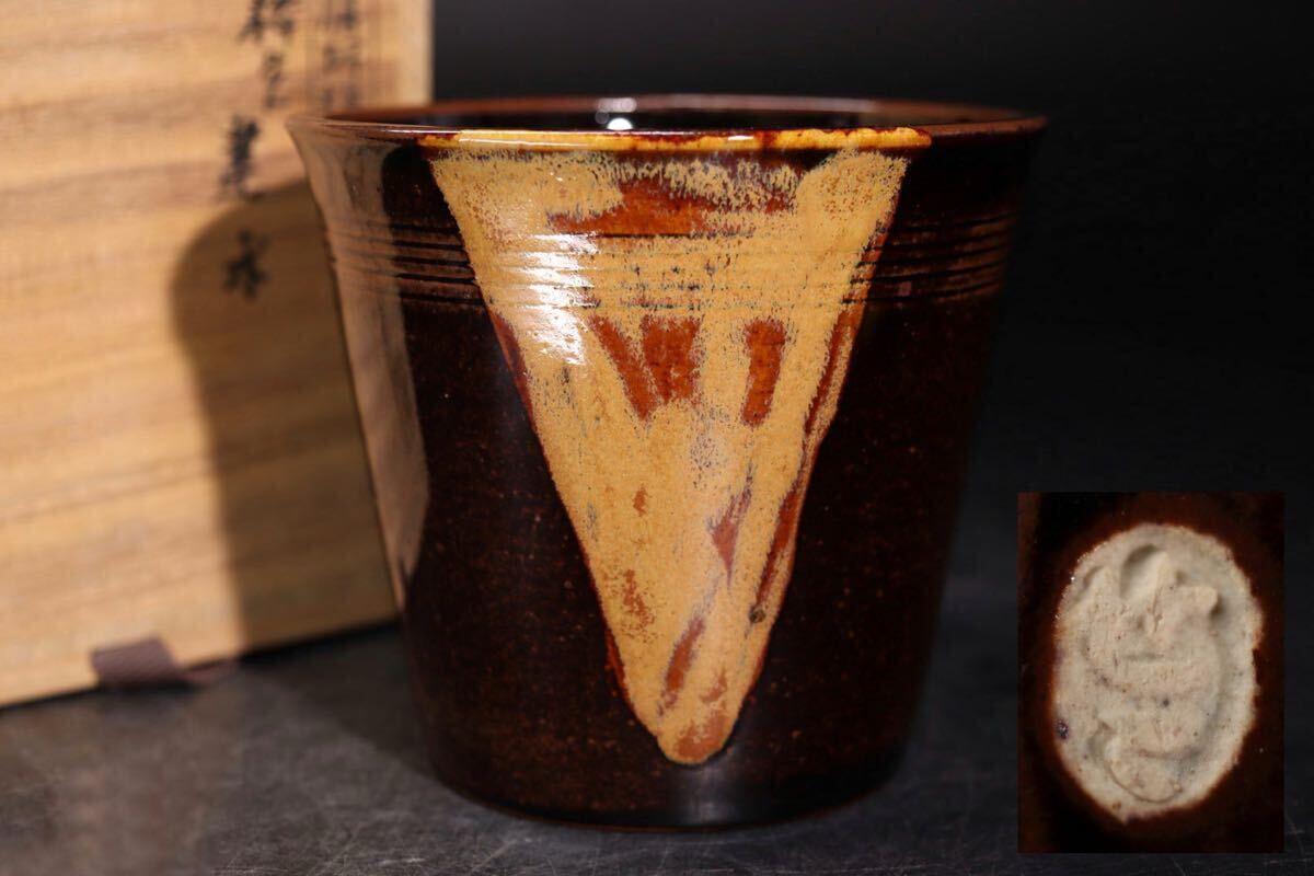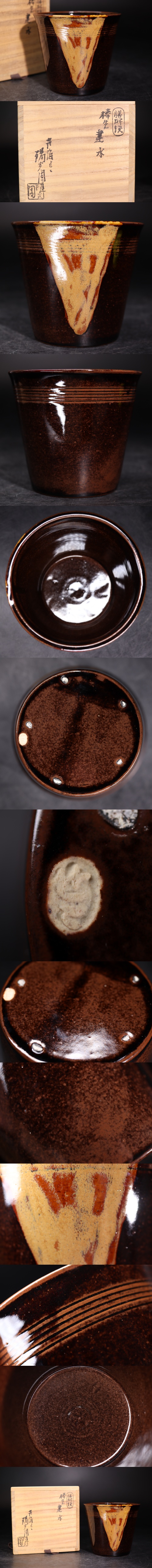 - 淡海ぜぜ 陽炎園 造 「 膳所焼 棒先 建水 」 共箱付 / 茶器 煎茶道具 煎茶飾 .G2608