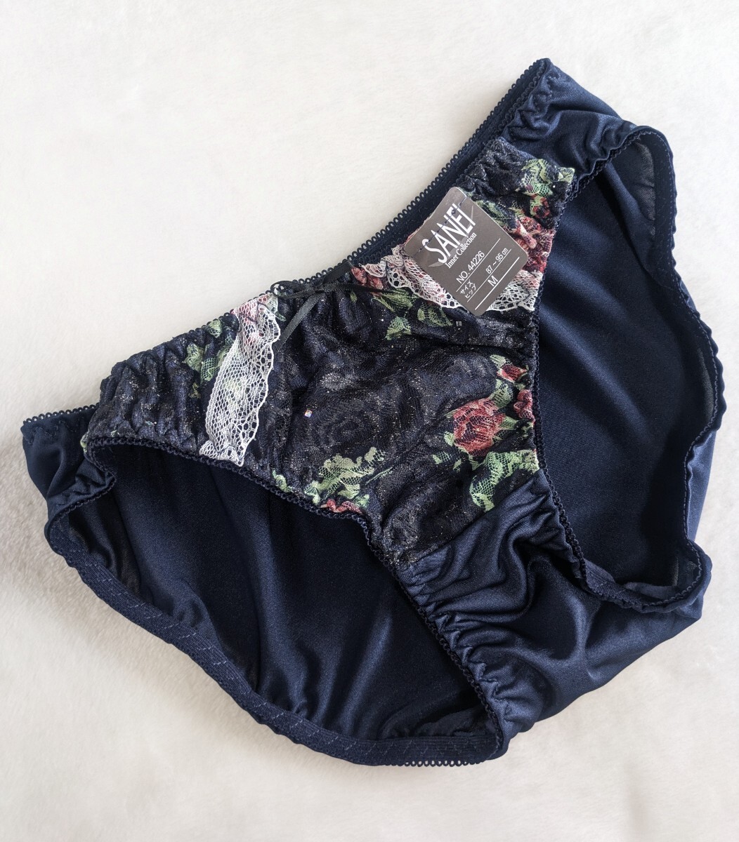- お泊まりに☆パンティ未使用M☆&控えめキラキラ☆お花柄レース☆ネイビー☆匿名配送可☆タグあり☆