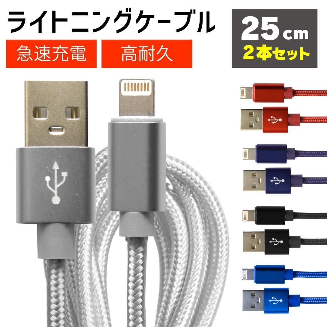 - 【シルバー/2本セット】充電ケーブル iPhone ライトニングケーブル 25cm ライトニング データ転送 充電器 急速充電 バッテリー【送料無料】
