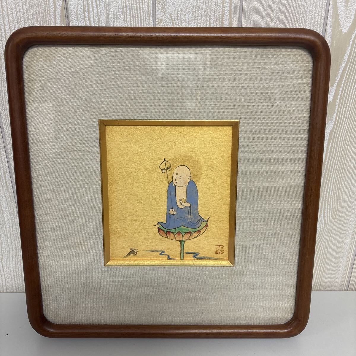 真作 関保壽 延命地蔵菩薩 色紙画 色紙額 直筆 関頑亭 ナマズ 仏画