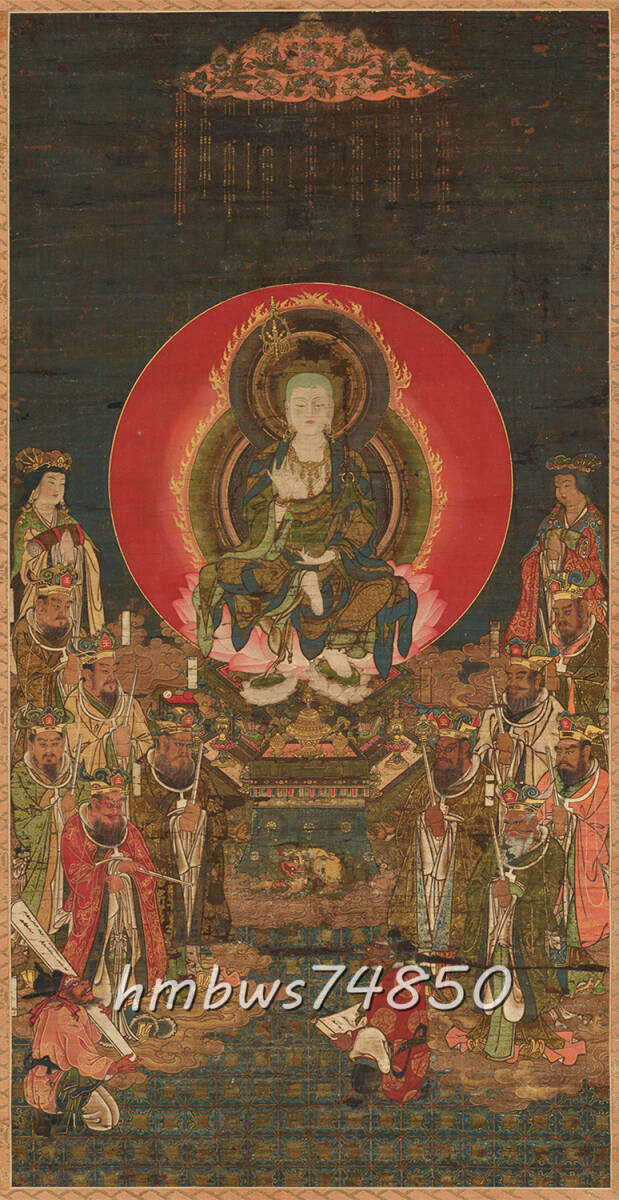 - 地蔵十王図 仏画 絹布 仏教美術 絹本 掛け物 美術品 収蔵品 未表装