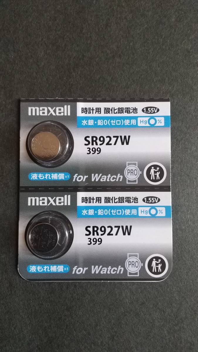 - 2個セット*マクセル、最新型 純正パック・SR927W(399)、メーカー液漏れ保証 時計電池 Hg0% 2個¥480 送料¥85