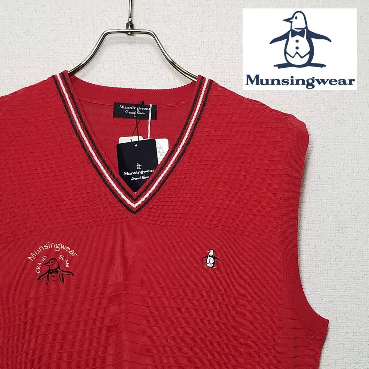 > 【デサント製/未使用】◎ Munsingwear マンシングウェア/ ワンポイント刺繍ロゴ Vネック ベスト SIZE: L レッド