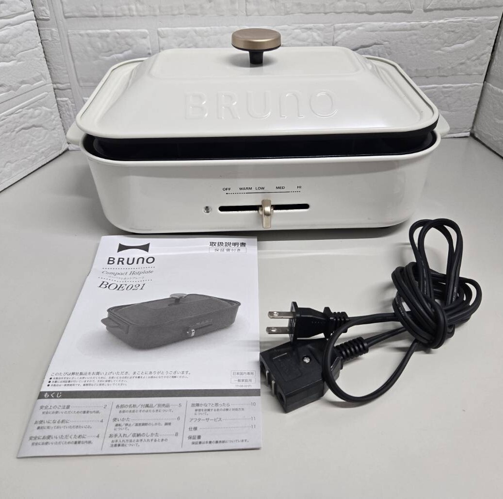 - (美品) BRUNO ブルーノ コンパクト ホットプレート BOE021 たこやき 取説付 白 ホワイト 通電動作確認済 中古 現状品 付属品画像の通り