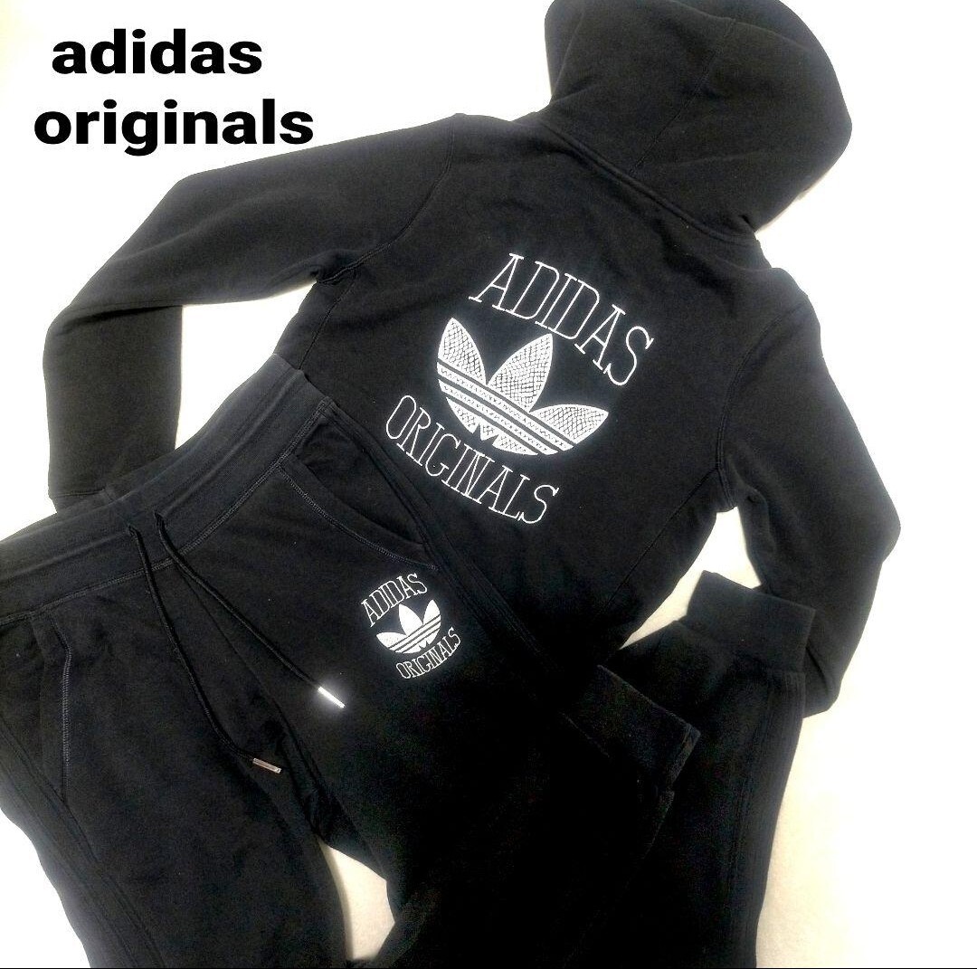 > 希少 レア adidas Originals ロゴ 刺繍 アディダス オリジナルス/ジャージ/セットアップ/L/black ブラック 黒 上下セット レディース