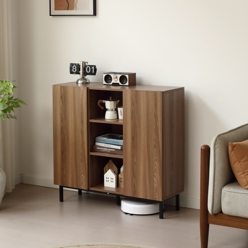- キャビネット 扉付き サイドボード 収納棚 おしゃれ リビング モダン 棚 木目調 チェスト 書類 コード穴 韓国インテリア 扉