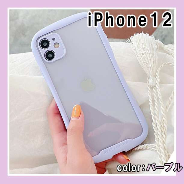 > iPhoneケース アイフォンケース 耐衝撃 12 紫 パープル クリア F