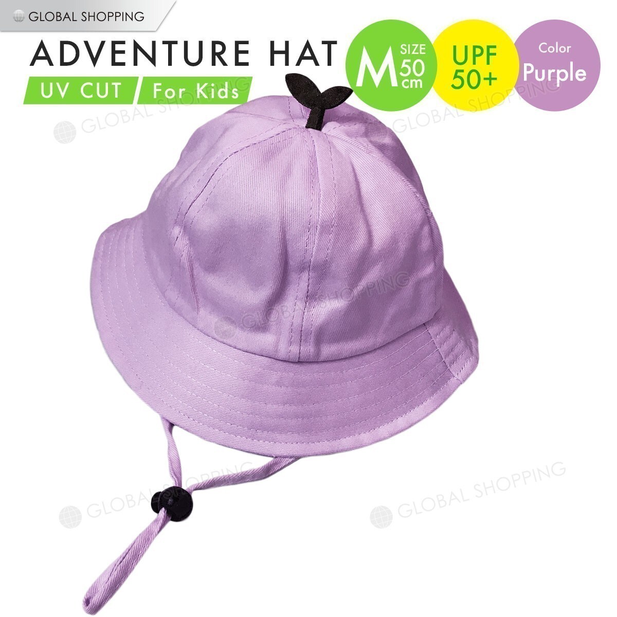 - ハット 赤ちゃん用 帽子 夏 子供 子ども 赤ちゃん ベビー 男の子 女の子 あごひも付き 散歩 外遊び 公園 Mサイズ 50cm 紫 パープル