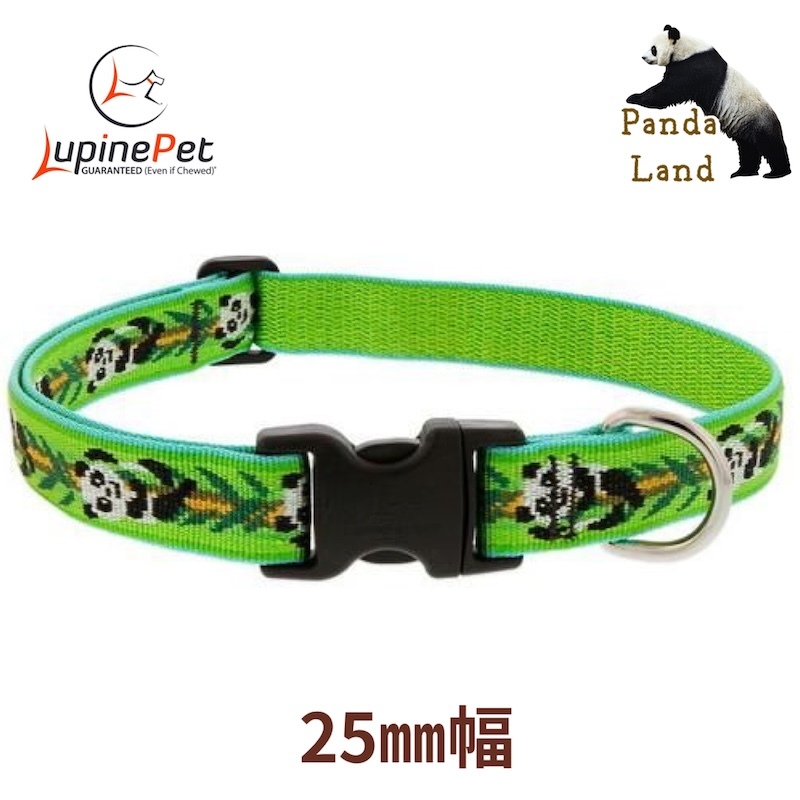 > ワンタッチ首輪・Mサイズ・25mm幅 パンダランド柄Panda Land 40-71cm LUPINEルパイン アメリカ製 軽量 丈夫 中型犬・大型犬
