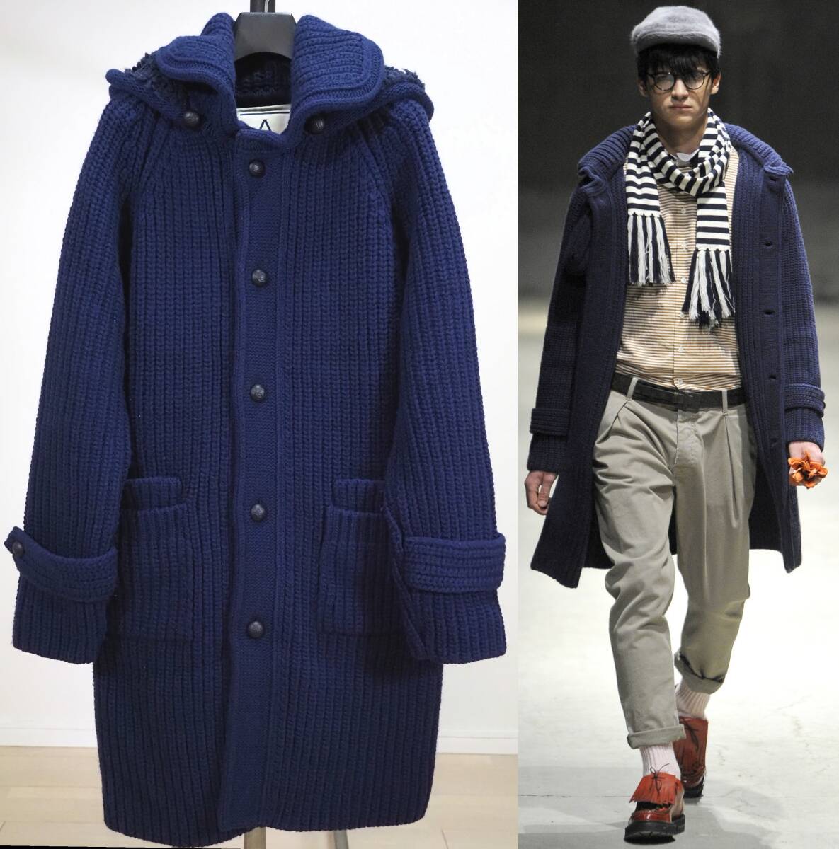 - ANDREA POMPILIO アンドレアポンピリオ 12AWフーデッドニットコート48紺 Italy製