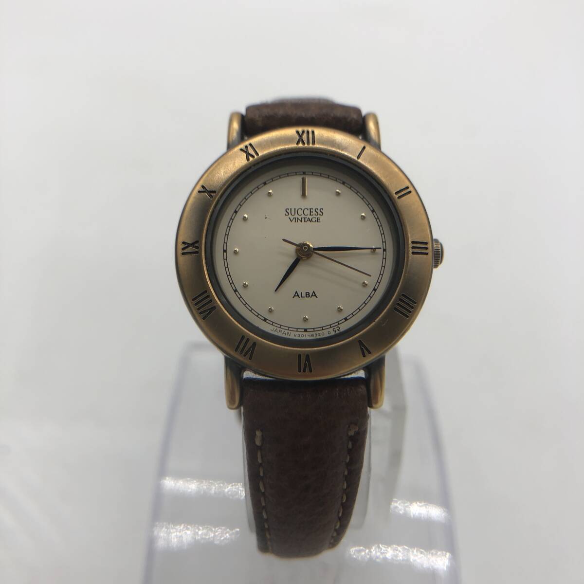 - 【美品】【SEIKO】ALBA SUCCESS VINTAGE QUARTZ JAPAN V301-6E10 BASE METAL BEZEL 中古品 時計 牛革ベルト メンズ レディース O