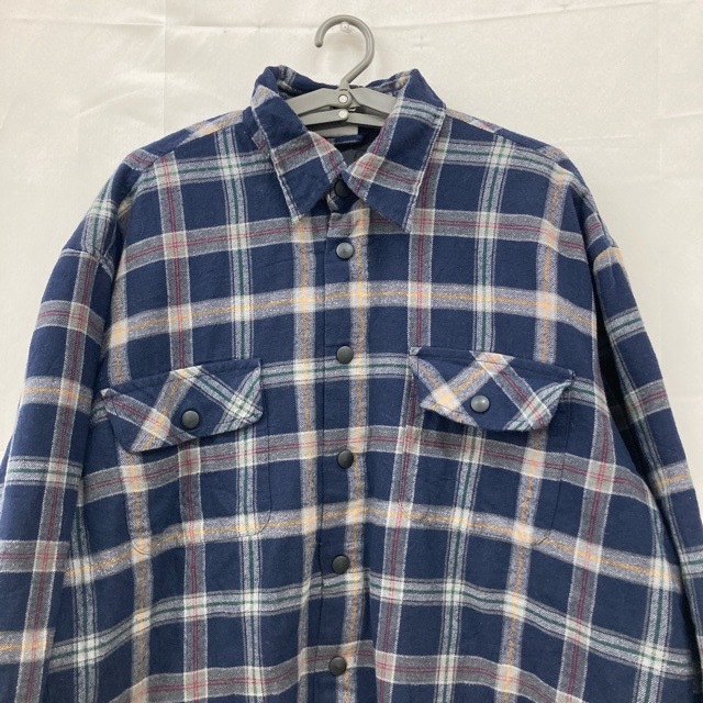 > A716 エンリコモリ L ユーロ古着 コットン ポリエステル 中綿入り チェック シャツジャケット ネイビー系 Enrico Mori メンズ