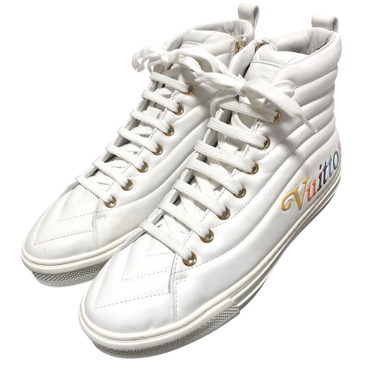 > 未使用【ルイヴィトン】本物 LOUIS VUITTON 靴 23cm ステラーライン ロゴ スニーカー ハイカット カジュアルシューズ レザー レディース 36