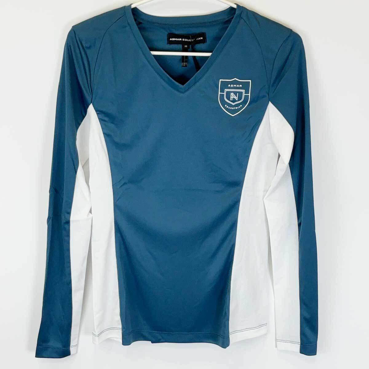 - 【中古・未使用品】NOEL ASMAR ノエルアスマール ストレッチ S/S 長袖 ライディング シャツ ロゴ Tシャツ XS ブルー レディース 乗馬
