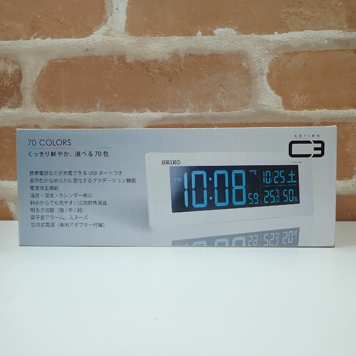 - 9214T 未使用 SEIKO デジタル電波目覚まし時計 DL305W ホワイト シリーズC3 セイコー くっきり鮮やか、選べる70色