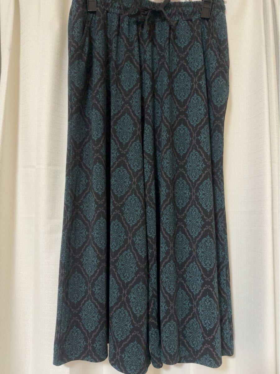 - パンツ☆ひざ下丈☆キュロット☆ 総柄☆L〜☆ウエスト総ゴム☆軽量☆グリーン系☆イージーパンツ☆