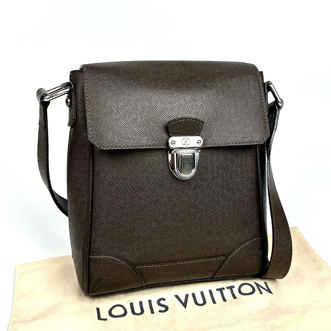 > 極美品 LOUIS VUITTON ルイヴィトン タイガ ルカ グリズリ ショルダーバッグ ポシェット M31198 シルバー金具 フォーマル 男女兼用 レザー