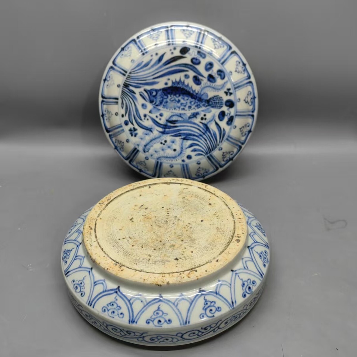- 【積古】中国古美術 明時代 青花 魚紋 合 古玩 骨董 美術品 骨董品 時代物 古美術 唐物 当時物 置物 xgh15