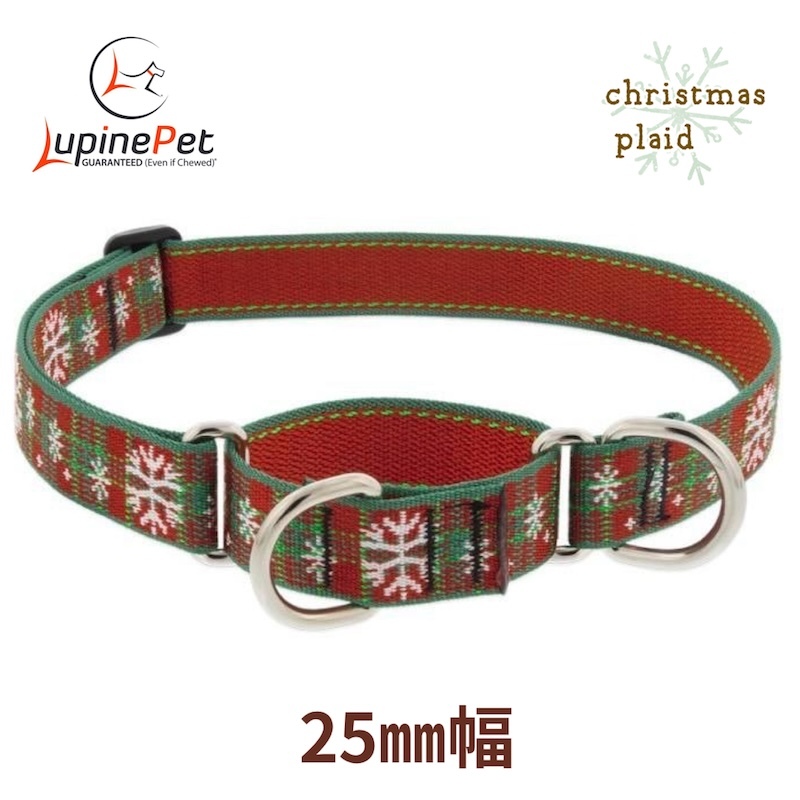 > ハーフチョークカラー・Lサイズ・25mm幅 クリスマスチェック柄 48-68cm LUPINEルパイン アメリカ製 軽量丈夫・大型犬