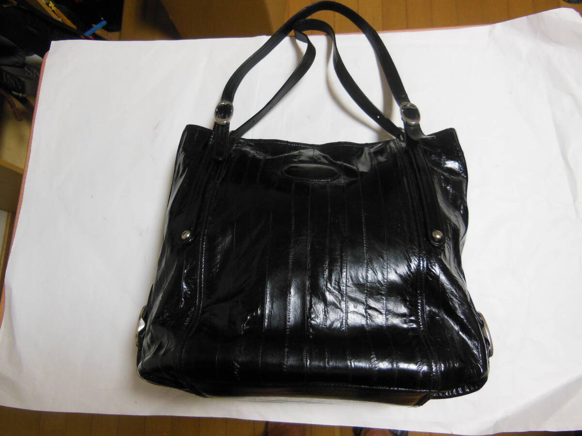 - 未使用品 GALLERIA ハンドメイド レディーストートバッグ 本革・イールスキン ブラック 送料無料
