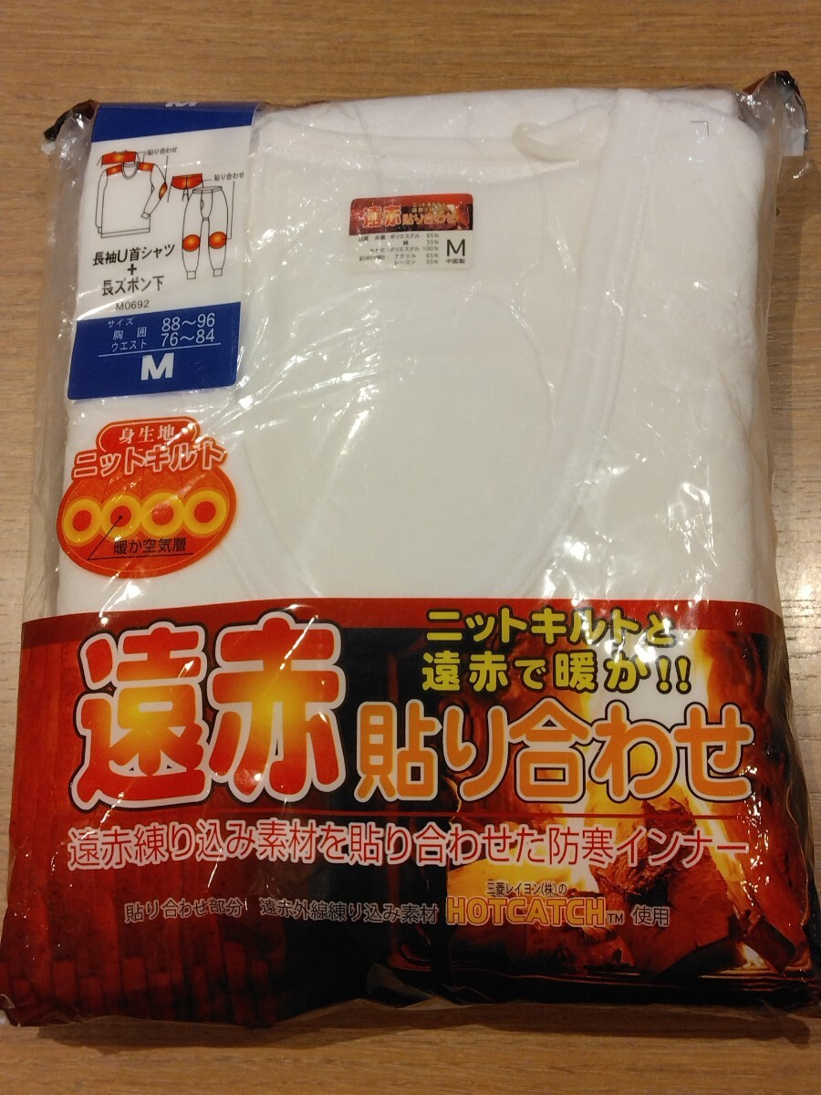 > 《新品》メンズ 長袖U首シャツ 長ズボン下 上下セット Mサイズ 冬用 ニットキルト 肌着 インナー アンダーシャツ 紳士物 c115/125
