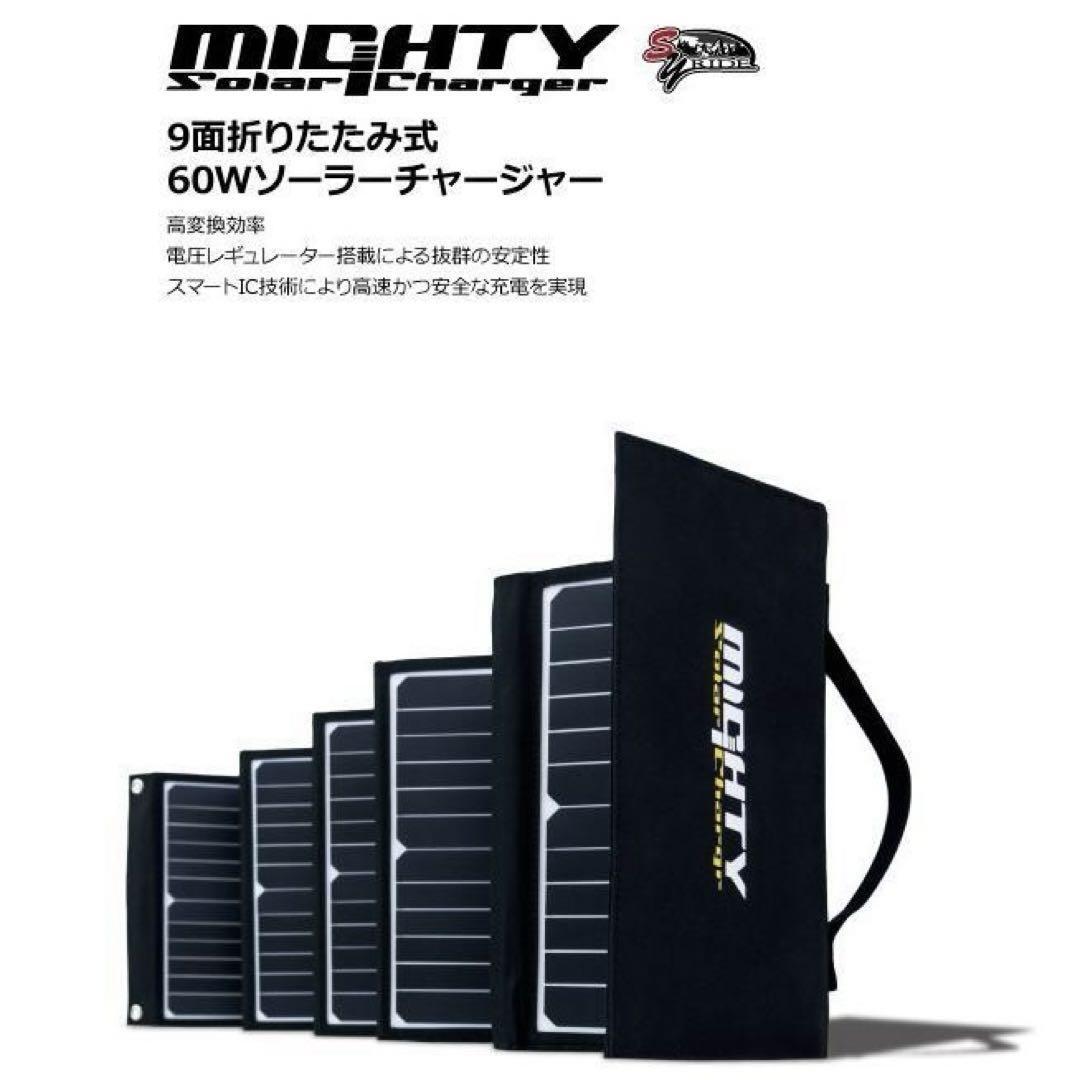 - ソーラーパネル ソーラーチャージャー 60W 9面折りたたみ型 防水撥水加工