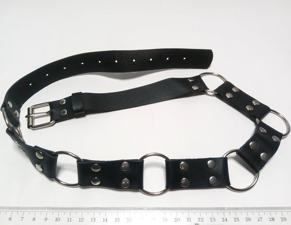 > 6個シルバーリングをPuレザーハーネスで連結したウエストベルト パンク装飾ウエストベルト ゴシック衣類アクセサリー ★鄭6[丨1[丨3