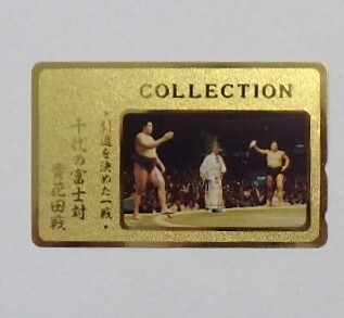 - T13 未使用テレカ 引退を決めた一戦 千代の富士 対 貴花田戦 テレホンカード 50度数