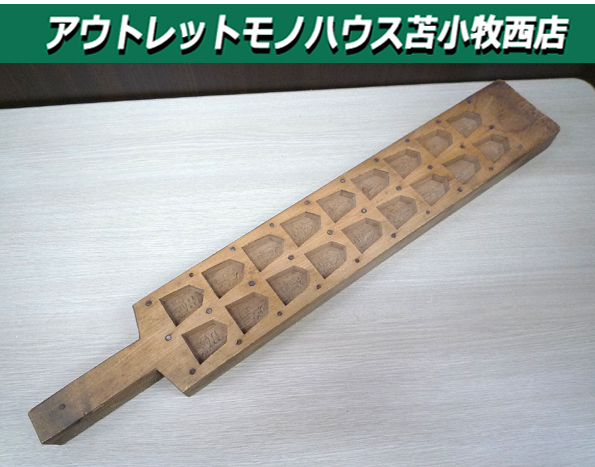 レトロ 和菓子 羽子板型 木型 木枠 将棋の駒 アンティーク オブジェ 中古 全長 約56cm 苫小牧西店