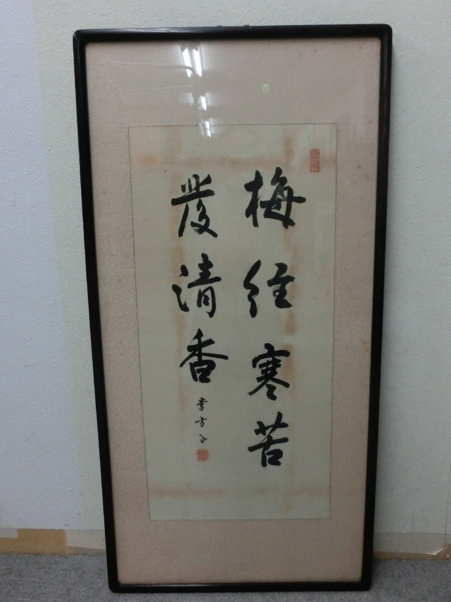 > ★41―117★額装 李方子 書「梅経寒苦発清香」額サイズ約94×46cm 詳細不明/朝鮮 韓国 茶道具 落款 署名 骨董 古美術[160]