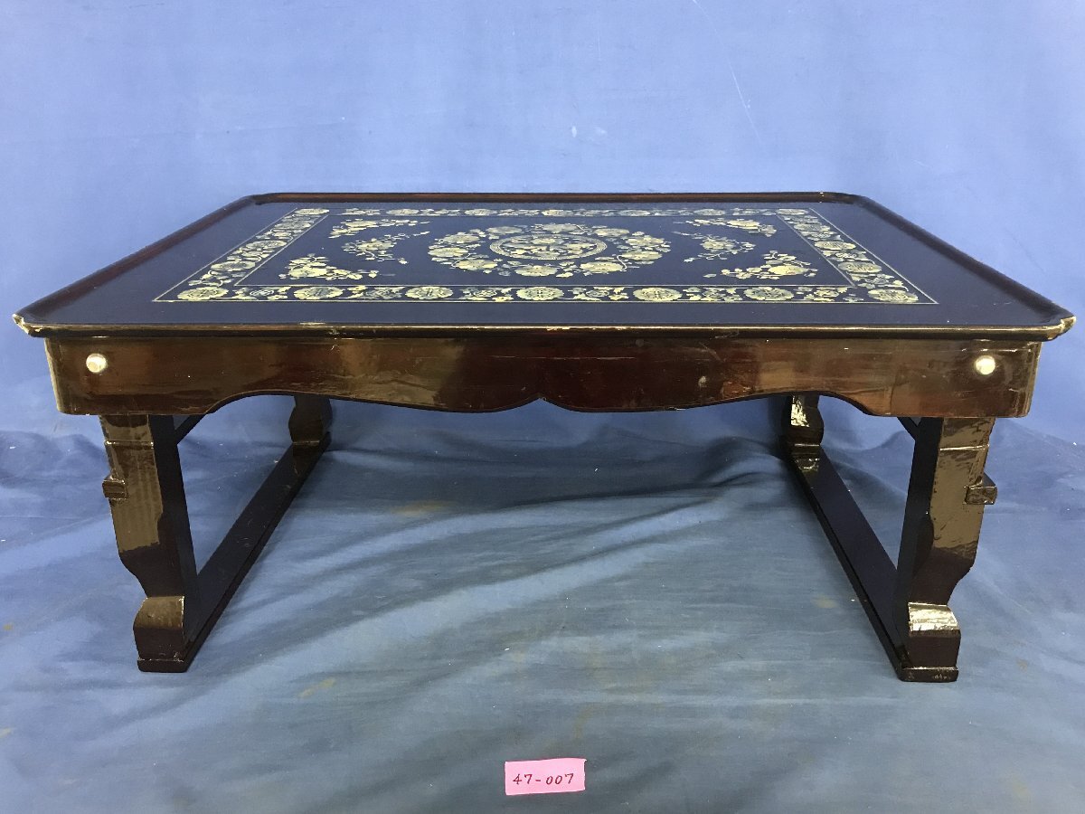 > ★47―007★文机 寿福 兄弟 漆器 螺鈿細工 ミニテーブル 高さ約26cm 60×45cm/韓国 レトロ 木製 折り畳み サイドテーブル[140]