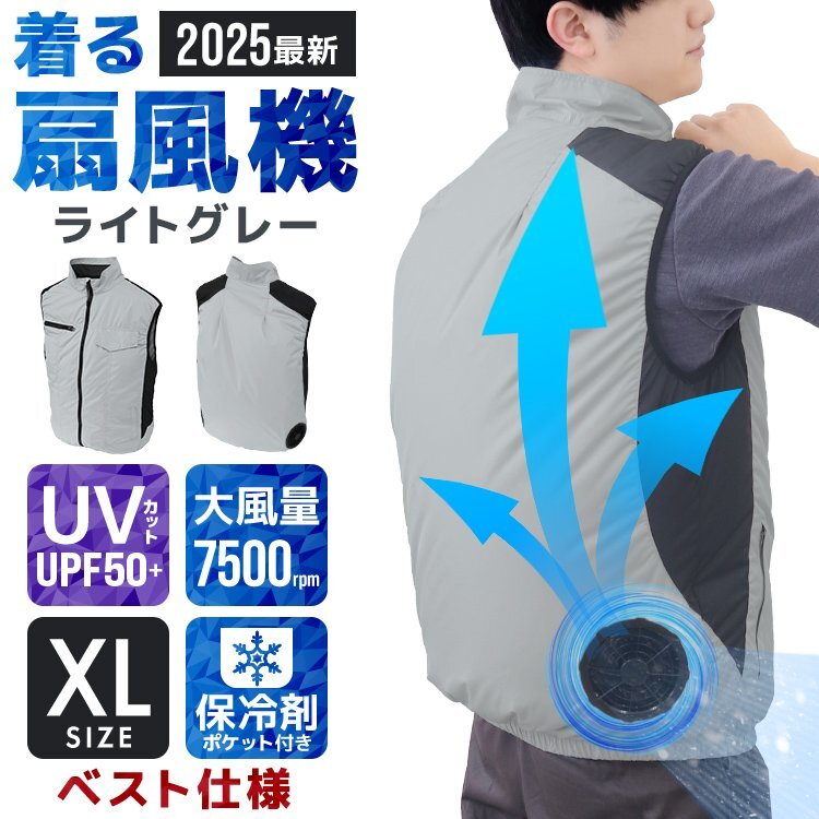 - 【ベスト仕様/XL】ファン付 空調ウェア 洗える クール 作業ウェア 風量3段階 3D立体風循環 作業服 熱中症対策 男女兼用 [ライトグレー]