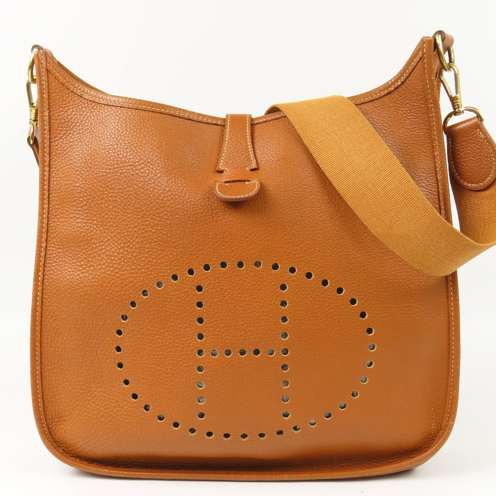 > 202452★1円スタート★HERMES エルメス 外美品 エブリン1PM Hロゴ パンチング ヴィンテージ ショルダーバッグ トゴ ブラウン □C刻印