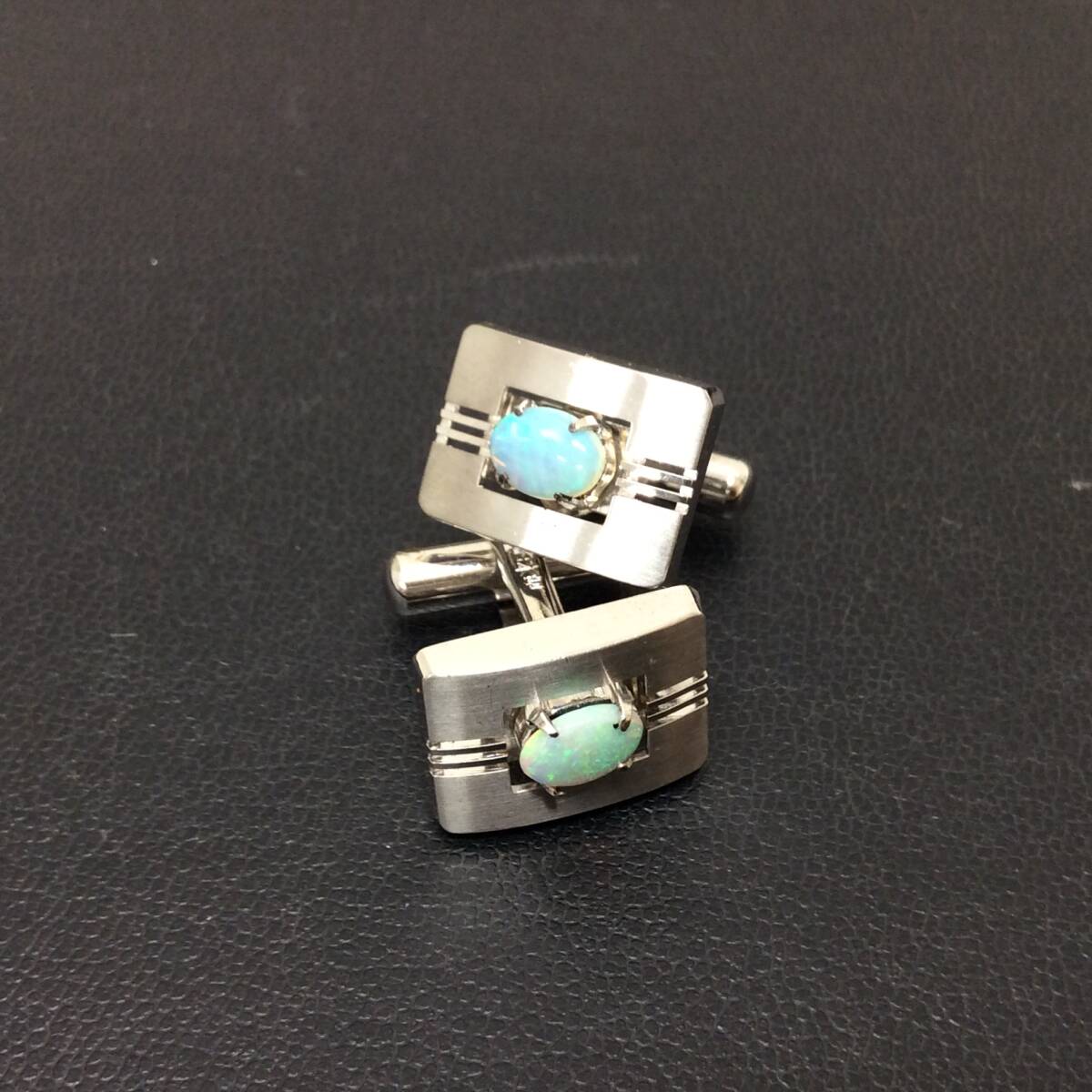 - ■3985 銀製刻印 オパール カフス カフリンクス シルバー約7.6g アクセサリー 日本製 長期保管