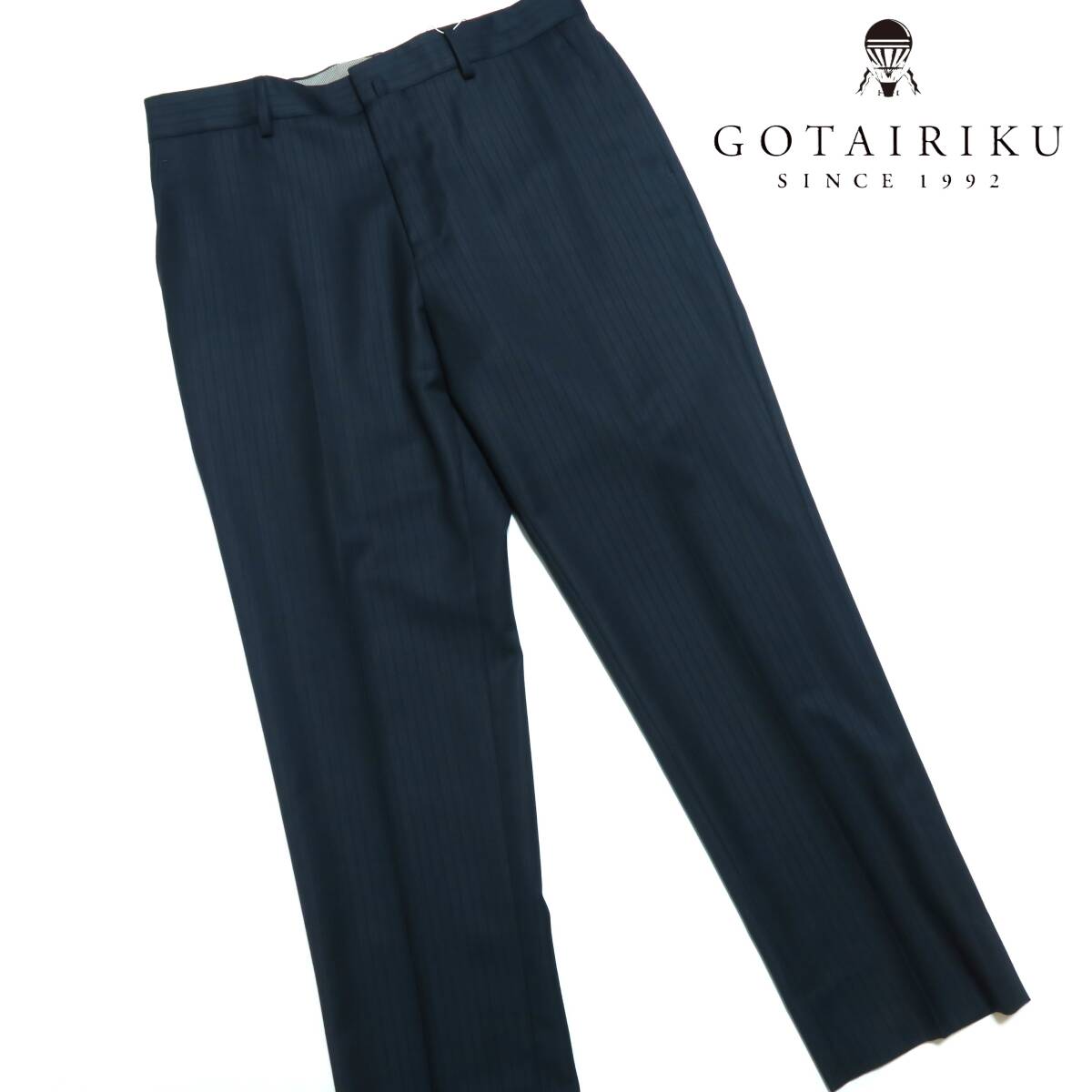 - R050■秋冬 五大陸 GOTAIRIKU ゴタイリク 紺色系ストライプ 高級ウールスラックス W84cm オンワード樫山 少々訳あり