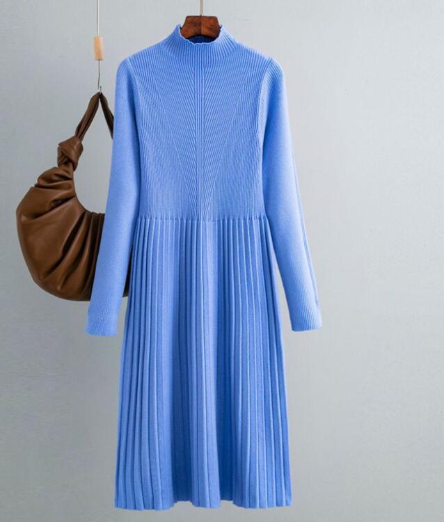 > 342 ワンピースladiesレディース ◇ 魅惑Styleセクシー ◇sexy 上質 ニット素材 秋冬 長袖 ブルー