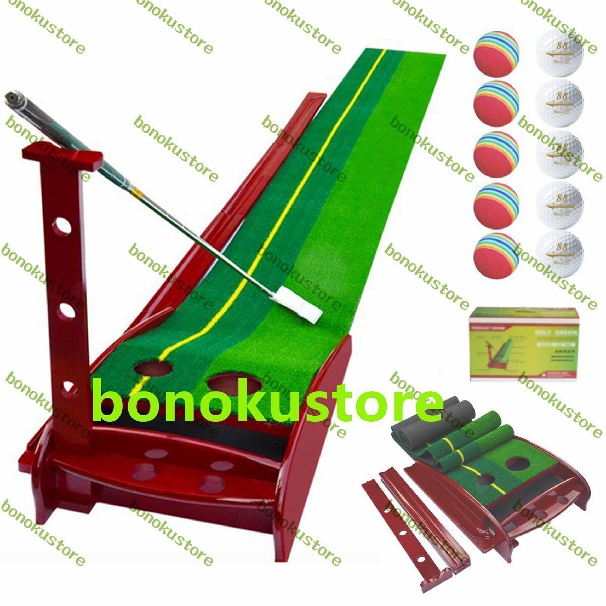 - ゴルフ パターマット練習器具 自動返球 無垢材 パター練習マット 折り畳み式 ゴルフ練習器具 ゴルフクラブ1個 ボール4個付き人工芝3.5m