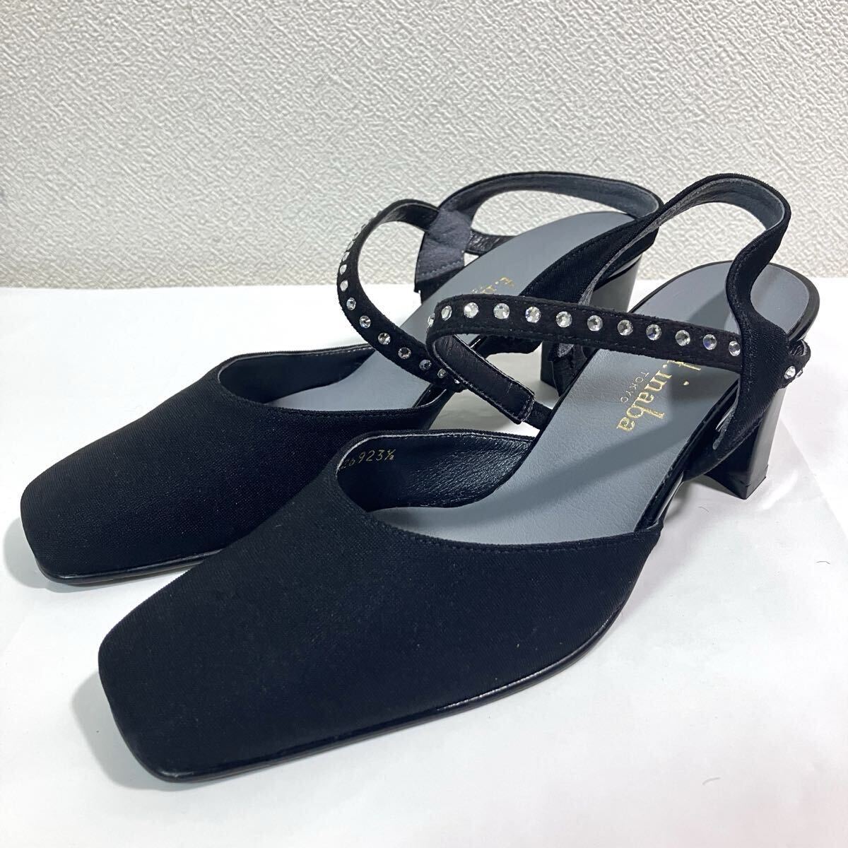 - 未使用◎t.inaba ティー.イナバ ビジュー付き ミュール ゴムバックストラップ ブラック 黒 23.5cm 撥水加工