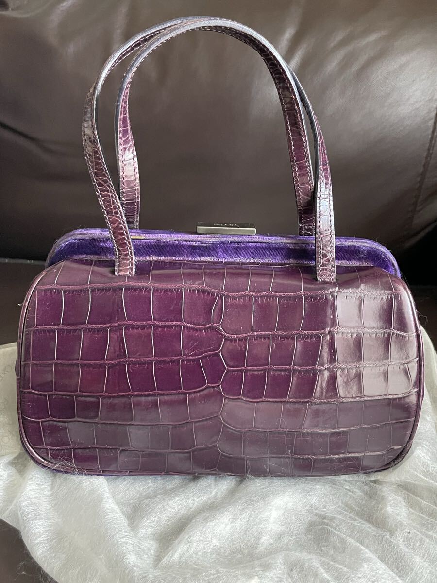 - 美品 レア プラダ PRADA ブラック クロコダイル柄レザー がま口タイプ♪ハンドバッグ