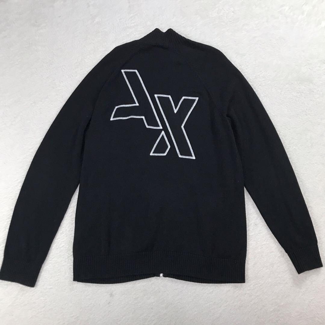 - 【人気・XL】ARMANI EXCHANGE アルマニーカーディガン ジップアップ 黒/ブラック ビッグロゴ 刺繍 ドライバーズニット ジャケット