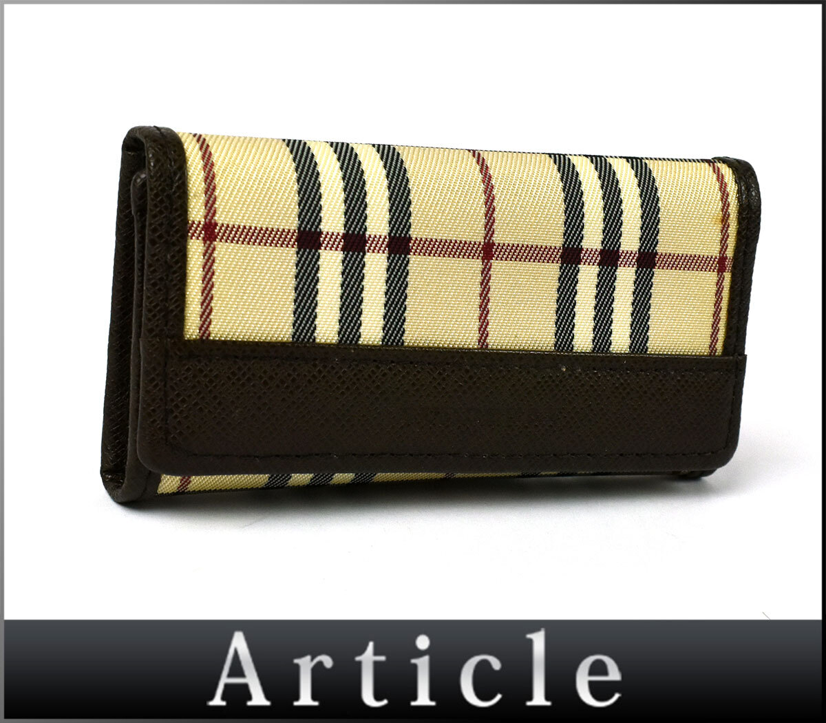 > 234735◆ BURBERRY バーバリー チェック柄 5連 キーケース 鍵入れ ナイロン レザー 革 ベージュ ブラウン メンズ レディース/ C