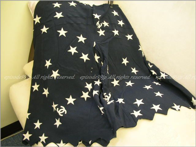 - シャネル 美品 * COCOスター☆★キュロット ロング丈 ネイビー×白 #46