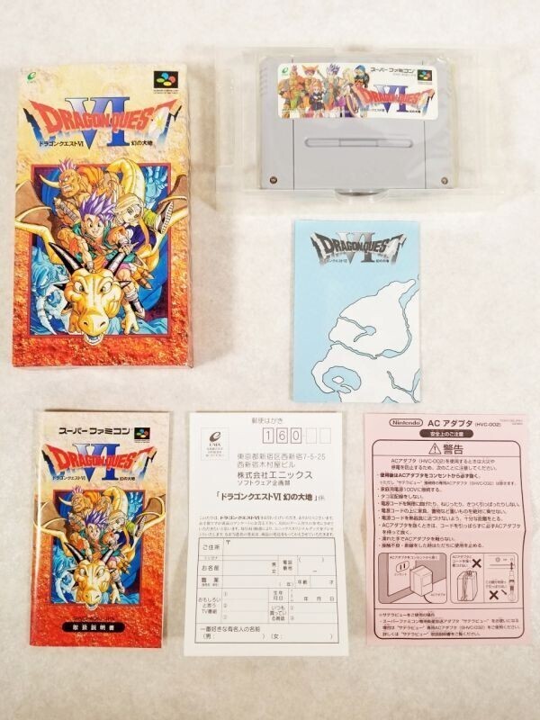> 当時物 スーパーファミコン ドラゴンクエストⅥ 幻の大地 箱・説明書・マップ・はがき・チラシ付き エニックス ENIX(60)
